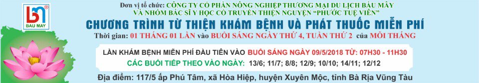 Được sự đồng ý của Sở Y Tế - UBND Tỉnh BR-VT, Công ty Cổ phần Nông nghiệp Thương mại Du lịch Bầu Mây phối hợp với Các Bác sĩ Y Học Cổ Truyền thuộc nhóm thiện nguyện Phước Tuệ Viên tổ c